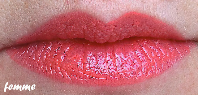 Femme è un corallo piuttosto chiaro, vira leggermente all'arancio ma rimane un colore delicato anche se intenso, è comunque una tonalità molto vivace, molto estiva direi, anche se sull'abbronzatura proprio non la vedo.